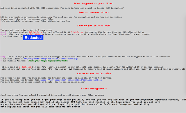 SamSam’s ransom note. (Talos Intelligence)