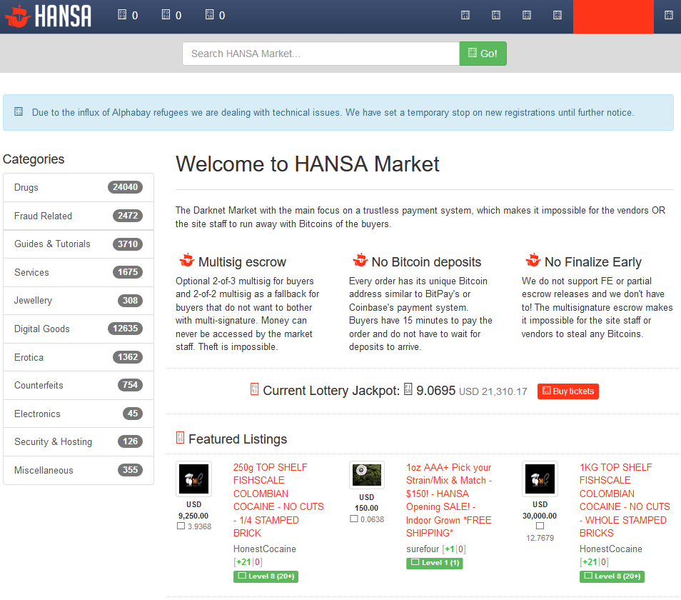 Three particular dark web markets have emerged as early front-runners: Hansa, Dream and Valhalla. Due to AlphaBay’s demise, Hansa had seen so many “refugees” that it temporarily had to close new registrations.