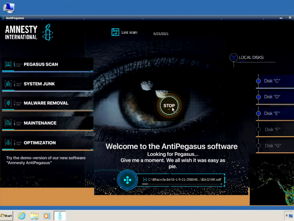 Masquerading as the human rights group, hackers registered multiple domains using variations on the Amnesty name to advertise a demo for “Amnesty Anti Pegasus” software that could allegedly scan devices for the NSO Group spyware, which Amnesty has closely examined. The malware had a realistic-looking “Anti Pegasus” user interface. In fact, victims downloaded Sarwent, a malicious software that gives attackers a backdoor to a victim’s machine.
