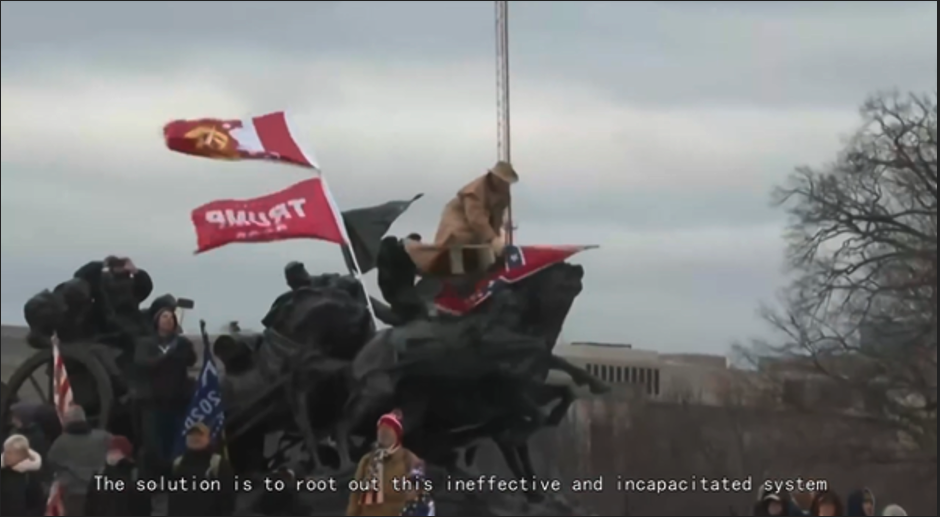 The video also pointed to the frequent mentions of “civil war” on social media and referenced politically motivated violence, including the Jan. 6 attack on the Capitol by supporters of President Trump and physical attacks on the FBI. “The solution to America’s ills is not to vote for someone,” the video said, but rather “to root out this ineffective and incapacitated system.