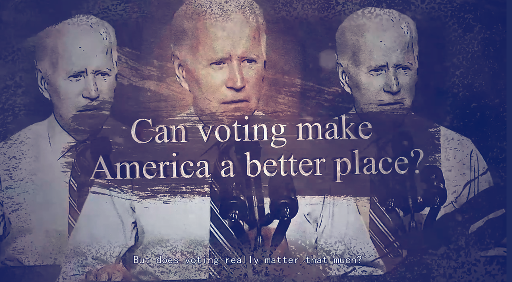 The video also included an image of Biden behind the messages “Can voting make America a better place?” and “But does voting really matter that much?