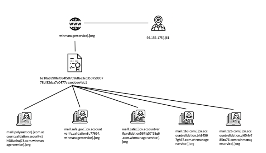 Upon discovering a website masquerading as a login page for the Chinese Ministry of Foreign Affairs, Anomali researchers found a family of five domains and close to 40 subdomains which rely on domain validation certificates issued by Let’s Encrypt, a free-to-use certificate authority. Along with the pages posing as Chinese government or state-owned organizations, other sites also impersonate a Hong Kong-based auction house and email service providers Gmail and NetEase Inc.