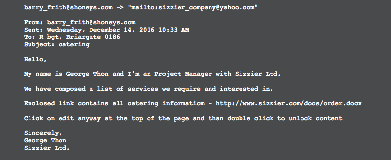 “This highly targeted phishing attack appears to have targeted a user at the restaurant in order to limit the effectiveness of corporate security initiatives,” said Blake Darché, co-founder of cybersecurity firm Area 1 Security, which specializes in helping enterprises defend against phishing emails. “Only preemptive action across the full technology stack can stop targeted phishing attacks. Legacy spam-focused email defenses continue to let these highly targeted attacks proliferate across corporate networks.”