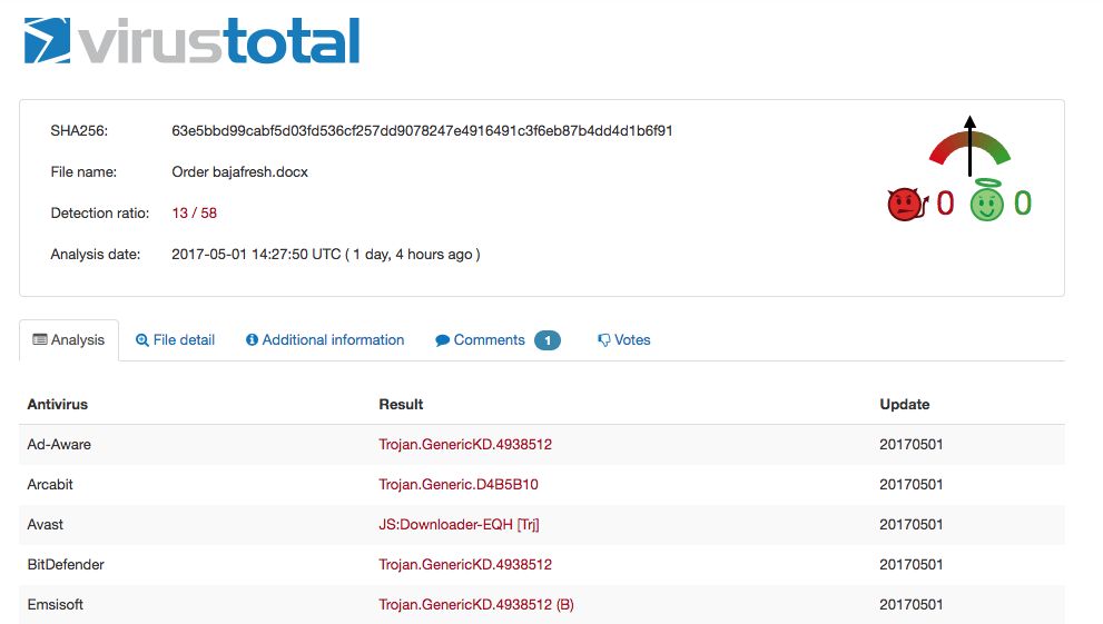 The malware-laden attachment in the email sent to the Tulsa-based Chipotle is a malicious Microsoft Office .RTF file with an embedded OLE object. The file was registered on VirusTotal on Feb. 22.