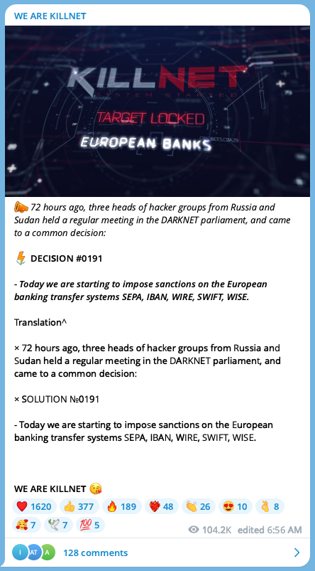 A message posted to the Killnet channel several days later said “a drunk came up with the name for the sake of trolling,” and the Cloudflare report noted that despite the trio of personas launching as many as 10,000 DDoS against Cloudflare-protected websites, the team had not “observed any novel DDoS attacks or disruptions.”