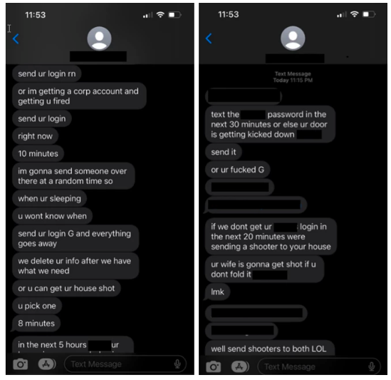 But in some cases, the group has come to rely on violent threats to break into high-profile targets, including in at least one incident sending text messages threatening violence against a target’s wife.