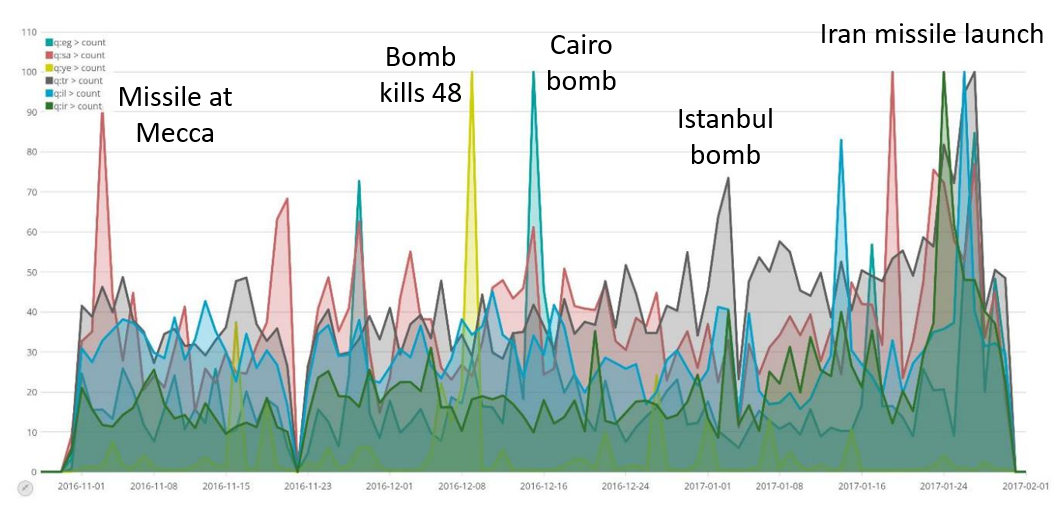In a previous analysis of malware in the middle east he conducted, he said, “For each one of the major spikes [in malware occurrence] there is a geopolitical event that corresponds.”