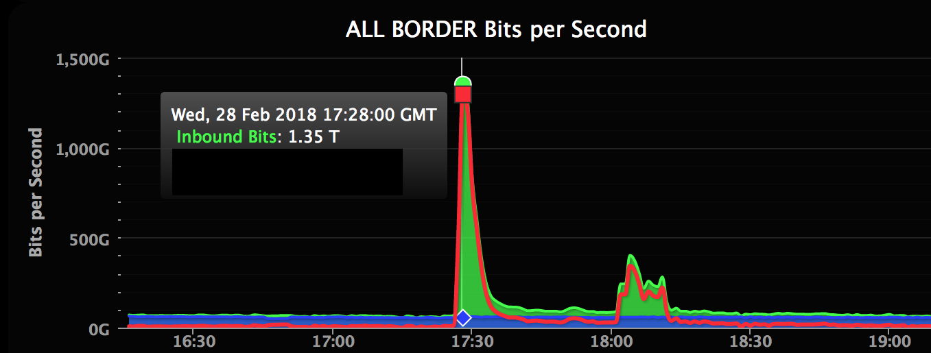 “The attack originated from over a thousand different autonomous systems (ASNs) across tens of thousands of unique endpoints,” GitHub’s Sam Kottler wrote in a Thursday morning post-mortem. “It was an amplification attack using the memcached-based approach described above that peaked at 1.35Tbps via 126.9 million packets per second.”