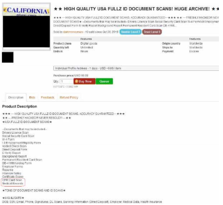 Medical records, in combination with other records, for sale on the dark net market AlphaBay