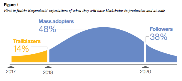 “To our surprise, 14 percent of government organizations surveyed expect to have blockchains in production and at scale in 2017,” the report states.