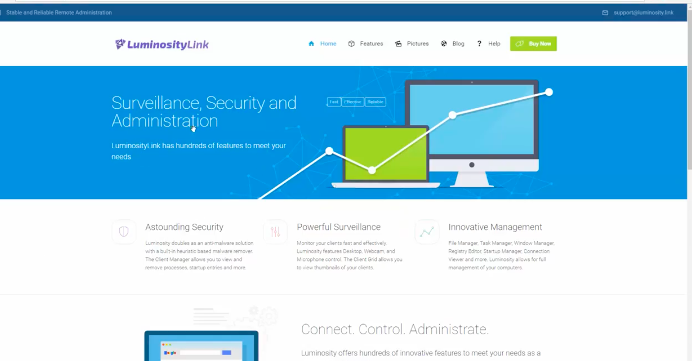 Here was LuminosityLink’s website boasting about “powerful surveillance” capabilities: