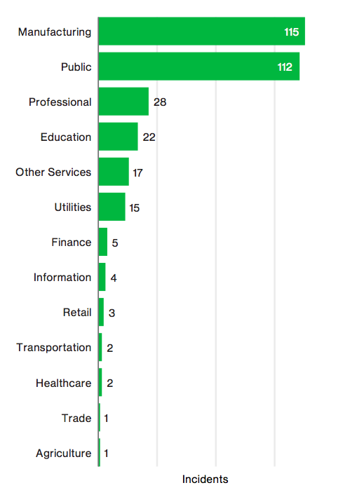 Verizon identified 620 data breach incidents in the manufacturing sector last year — of which 94 percent could be defined as “espionage” driven and attributable to “state-affiliated” actors.