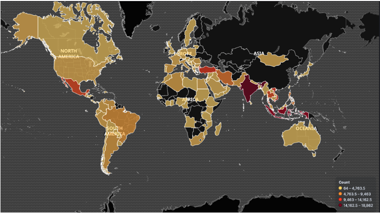 In its announcement, BitSight demonstrated how the Necurs operators built an international infrastructure by hacking computers in Africa, India and through the western hemisphere. India had the most infections, making up 13.59% of the botnet.