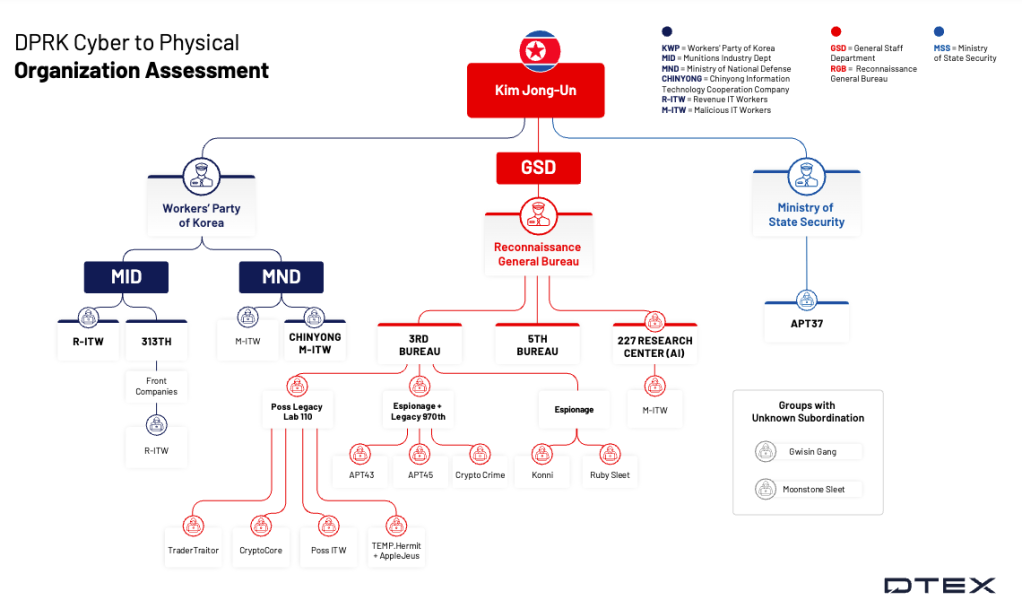 Beneath these layers of organization lies a well-defined management hierarchy that mirrors elements of both a state bureaucracy and a criminal syndicate. Many of the original members from other North Korean hacking groups, such as Lazarus Group, have risen through the ranks to become managers and group leaders, responsible for training, overseeing, and deploying new cohorts of cyber operatives. New operatives move between “traditional” APT hacking groups, freelance IT work, and managerial or advisory roles as needed by the regime’s shifting priorities.
