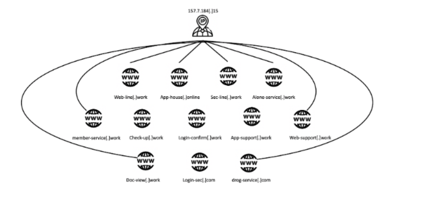 An Anomali rendering of the web infrastructure that made it possible for one IP address to host so many phishing sites.