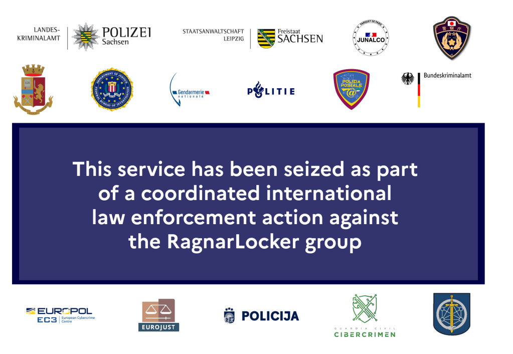 Law enforcement agencies from more than a dozen countries seized a website used by the criminal hacking group known as Ragnar Locker to leak stolen data and information, according to a message posted to the site’s front page.