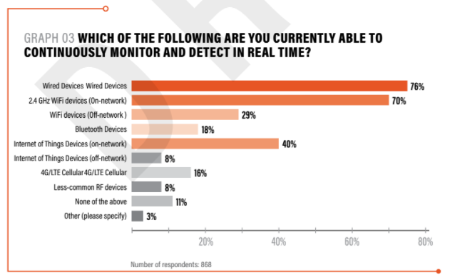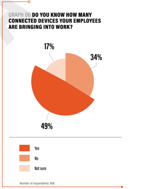 Only just under half of 800 IT security professionals surveyed said they could be certain how many connected devices their colleagues bring into work, according to the Internet of Evil Things report from network security specialists Pwnie Express.