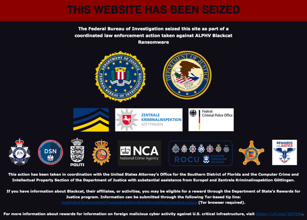 The group, known interchangeably as ALPHV or BlackCat, posted the fake seizure notice some time between late Monday evening and early Tuesday after reports that it had received a ransom payment from Change Healthcare — and then refused to distribute it to the affiliate that had carried out the attack.