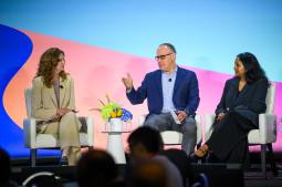 Amazon’s Chief Security Officer Stephen Schmidt, center, talks with Danielle Ruderman, Senior Manager, Worldwide Security Specialists, AWS, and Lakshmi Raman, Chief Artificial Intelligence Officer for the Central Intelligence Agency, at the AWS Summit in Washington, D.C. on June 10, 2025. (Photo Courtesy of AWS)