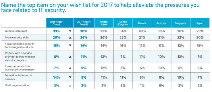 To address the fears, problems and pressures tech professionals said they faced on a daily basis, the wish list was simple: More budget (30 percent) and more skills (24 percent). Almost none of the respondents wanted more people on staff, preferring instead to give more money, power and simplicity to the team they already have.