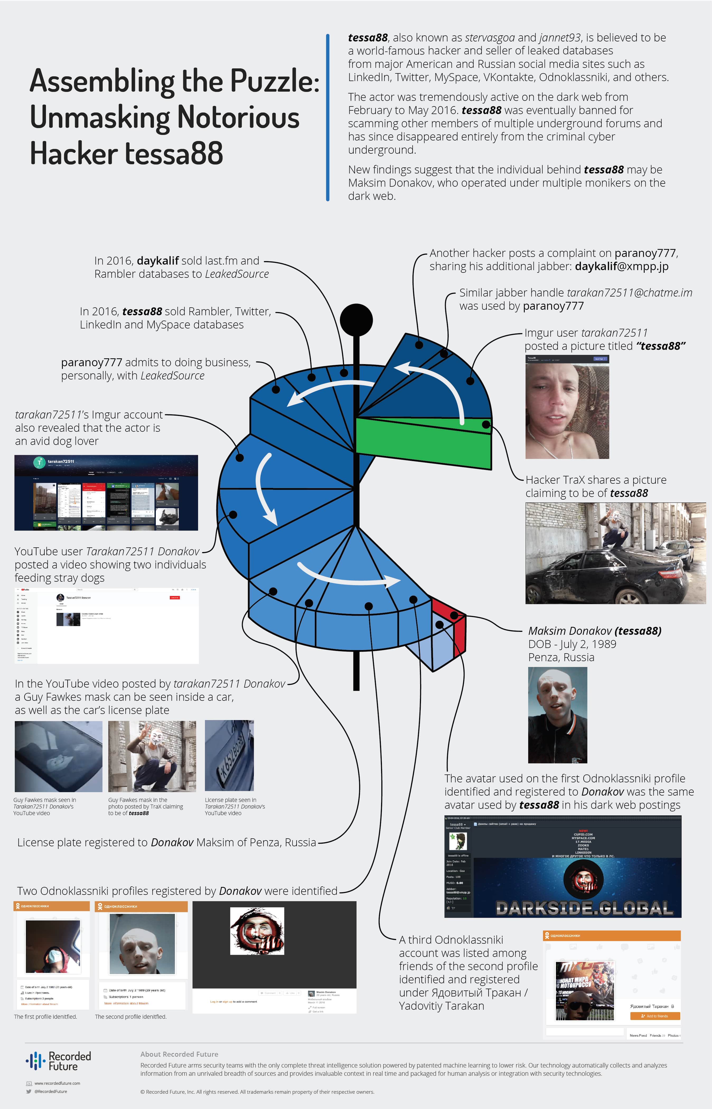 In a blog post published Tuesday, the company’s Insikt Group points to evidence that unmasks “tessa88,” a prolific data broker who sold access to information stolen in high-profile breaches. The company claims that tessa88 is tied to Russian national Maksim Donakov.