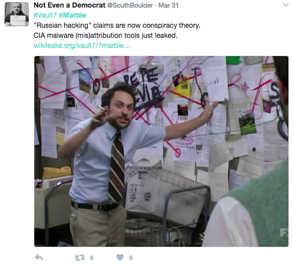 On social media, the material took on a life of its own, sparking accusations that Marble proved the CIA had engaged in “false flag” operations, including disguising itself as Russia to hack into the Democratic National Committee. The term “false flag” is used to define a covert action that is purposefully designed in such a way that it appears to come from another entity, group or country.